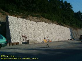 La ditta PASA S.n.c., in unione con l'Impresa S.I.C.I. S.r.l. è attiva dagli anni 70 nel campo della prefabbricazione in calcestuzzo con la produzione di muri di sostegno e prefabbricati di vario genere con paramenti da fondo cassero e rivestiti in pietrame. La produzione di manufatti per il campo civile, stradale ed ambientale, da posizionare e completare in opera per la realizzazione di murature, opere di sostegno rivestimenti di berlinesi, arginature.... Attualmente la ditta PASA S.n.c. occupa una superficie di 25.500 mq e dispone di 1550 mq di casseri vibranti con la possibilità di maturazione accelerata. La ditta PASA S.n.c., sulla base dei dati relativi ai terreni interessati, desunti dalle indagini geologiche e geotecniche, dei sovraccarichi del muro richiesto, delle sue altezze e sviluppi (prospetti) è in grado di formulare offerte di fornitura, anche completa di posa in opera e quanto necessario, su richesta , produce calcoli e disegni esecutivi ai fini delle autorizzazioni o dei depositi previsti dalle norme in vigore. La sostituzione di muri tradizionali con le soluzioni del Gruppo Pasa, anche in cado di opere già appaltate, può portare benefici per l'Ente committente e per l'appaltatore.